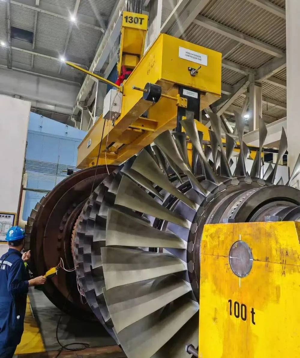 1号燃机转子总重达110吨、长度9.8米,其透平4级动叶直径达3.4米,而改造后的吊运通道宽度仅3.5米,操作偏差极易引发设备碰撞风险。技术人员通过反复桌面推演和实地测试不断优化吊装方案,作业现场实施“多人监护+多角度视频监控”的全方位监护机制,最终实现了吊立全过程“零碰撞、零隐患”的安全目标。